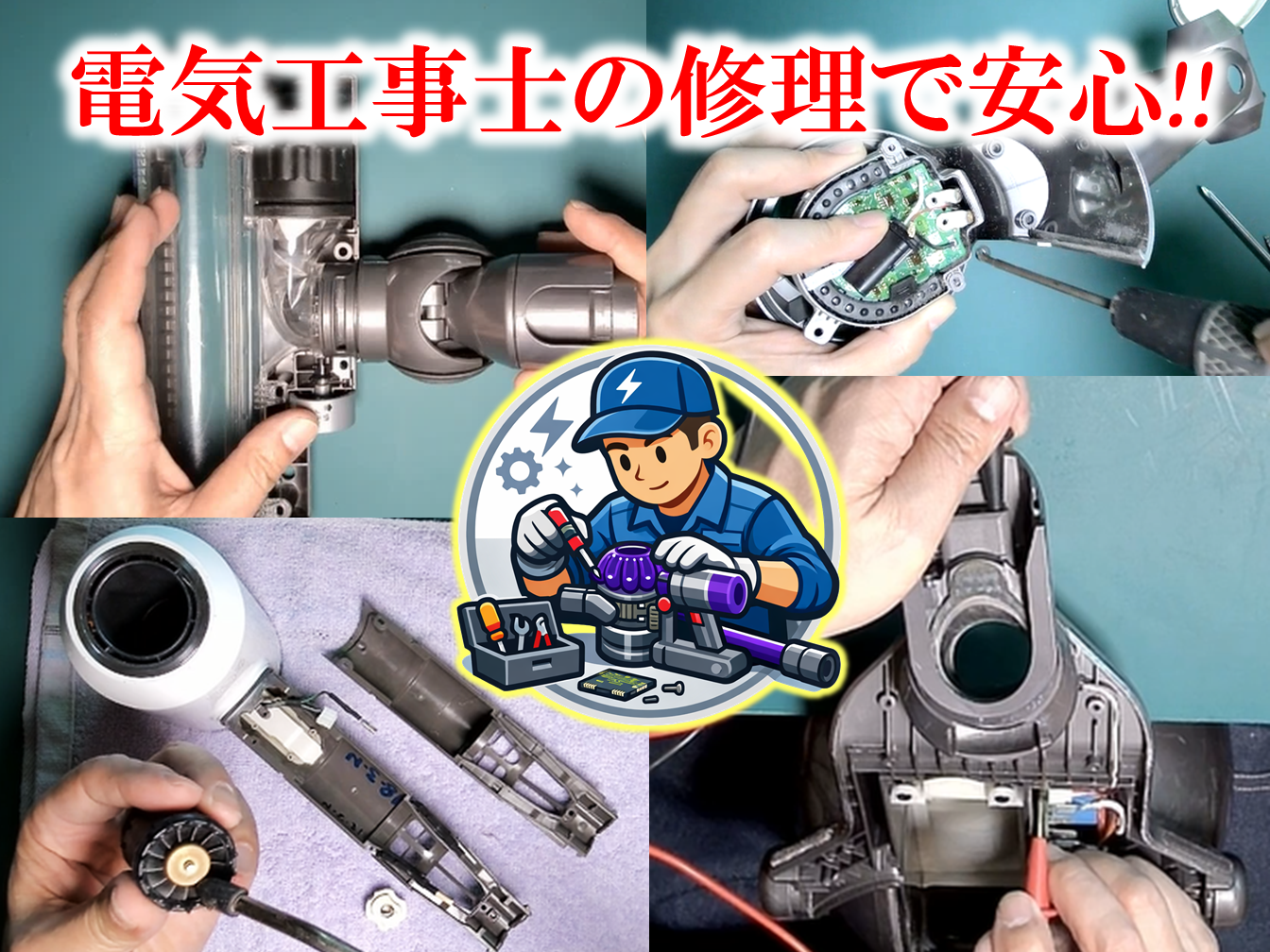 ✅ 手元スイッチが効かない(DC48 DC63 CY24 CY25共通) ✅ ヘッドが回転しない ✅ 吸引力が低下した ✅ コードレス掃除機の電源入らない ✅ パーツが破損 ✅ 伸縮パイプ断線 ✅ クリアビンの輪が外れた ✅ 異臭がする